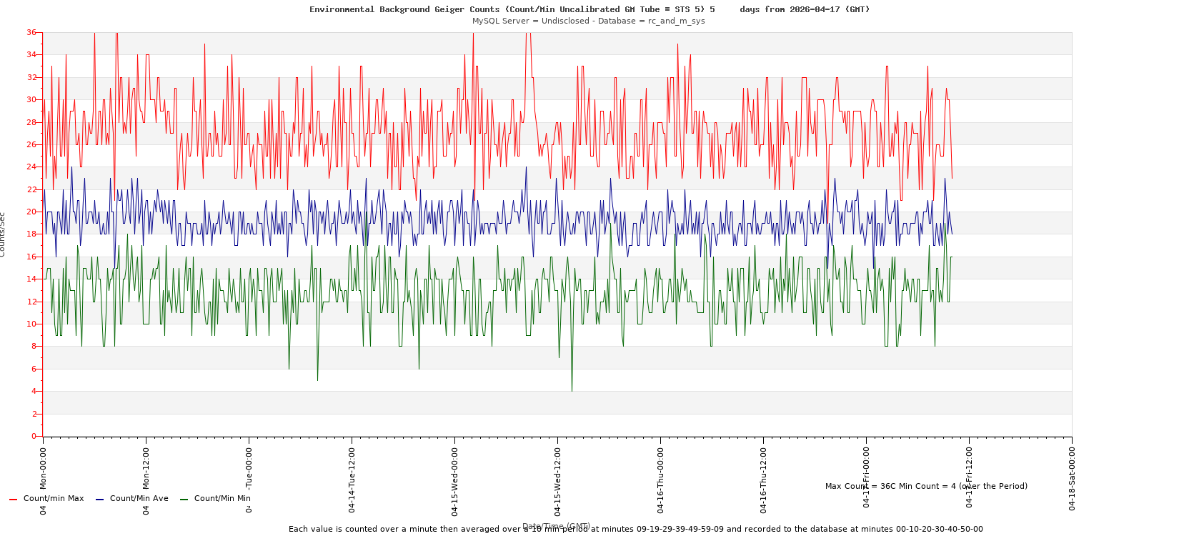 Environmental Background Geiger Counts Count/Min Uncalibrated STS 5 GM Tube 2026-04-17 Friday UTC