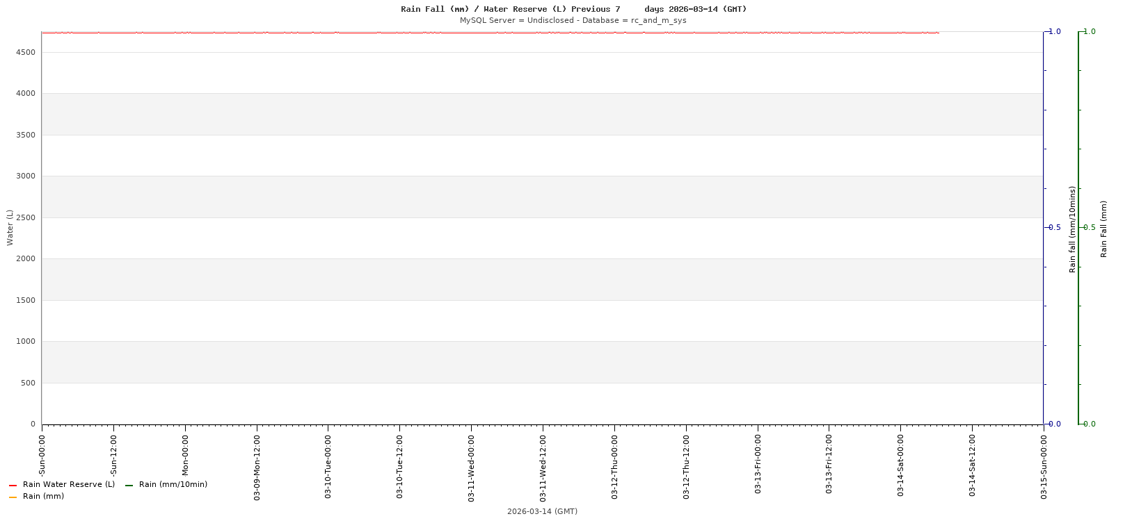 Rain Fall (mm) / Water Reserve (L) 2026-03-14 Saturday UTC